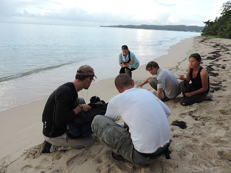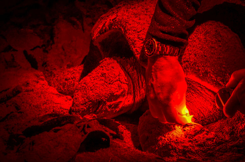 Le suivi nocturne permet avant tout de pouvoir approcher les tortues marines femelles pour identifier les nouveaux individus ou contrôler les tortues déjà connues.